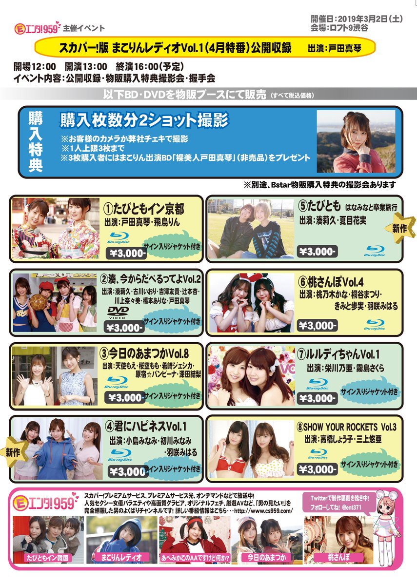 まこりんこと戸田真琴による自家製のゆるゆるラジオがスカパー版として帰ってきた!「エンタ!959」で4月特番として放送を予定している「まこりんレディオVol.1」を公開収録でお届けします!カメラを前でまこりんが1時間しゃべりまくる!